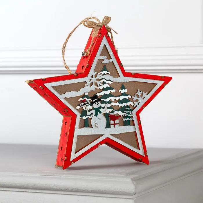 Светодиодная фигура «Снеговик в лесу» 22 × 22 × 4 см, дерево, батарейки АААх2 (не в комплекте), свечение тёплое белое — Характеристики