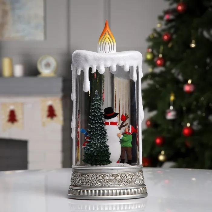 Светодиодная фигура «Свеча со снеговиком» 13.8 × 30 × 8.4 см, пластик, батарейки ААх3 (не в комплекте), USB, свечение тёплое белое — Характеристики