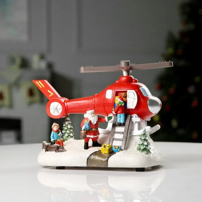 Светодиодная фигура «Вертолёт и Дед Мороз» 31.5 × 18 × 18 см, полистоун, батарейки ААх3 (не в комплекте), USB, свечение мульти — Характеристики