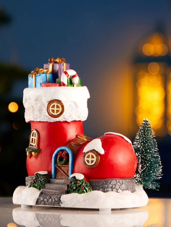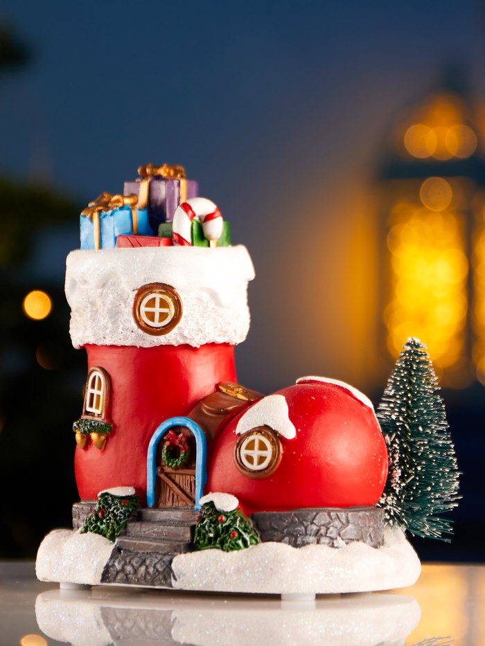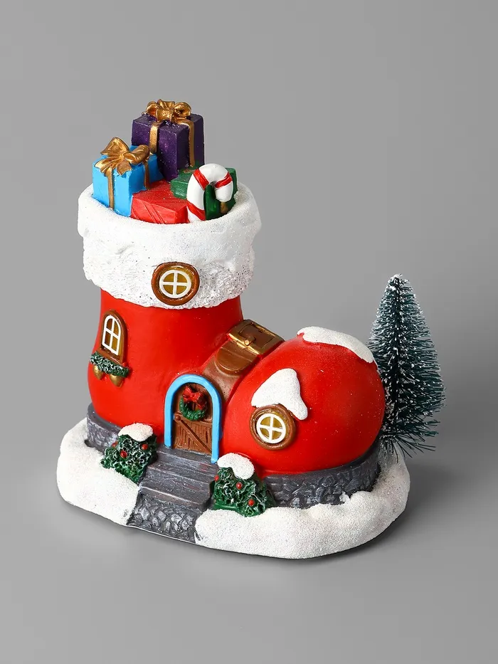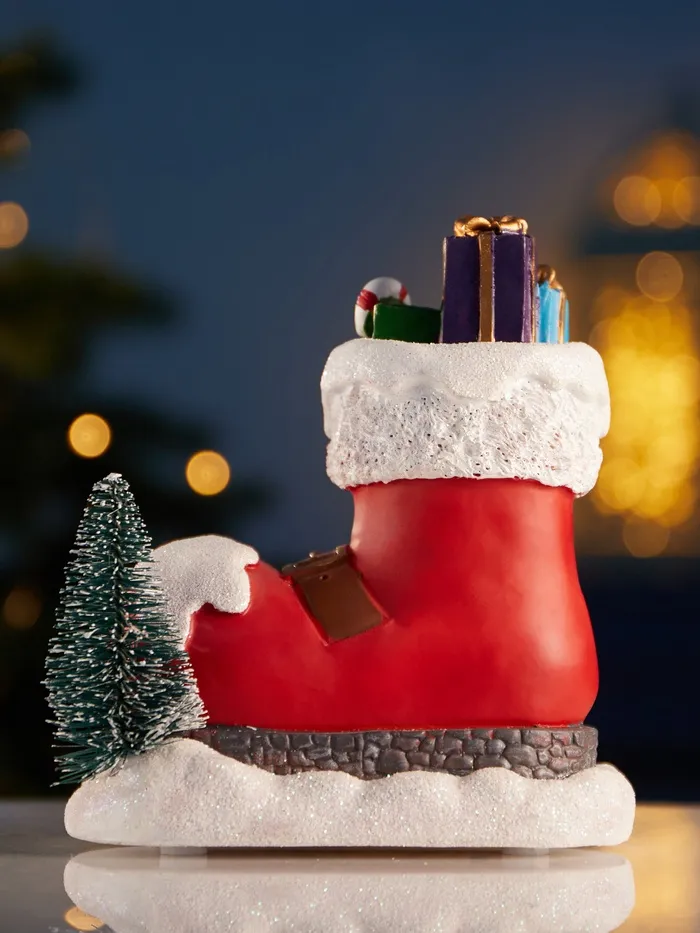 Небольшой декоративный сапожок с тёплым белым светом станет изящным акцентом праздничного интерьера. Его компактные размеры 13 × 11 см позволяют разместить фигурку на полке или столе, добавляя уют и атмосферу волшебства в любой уголок.