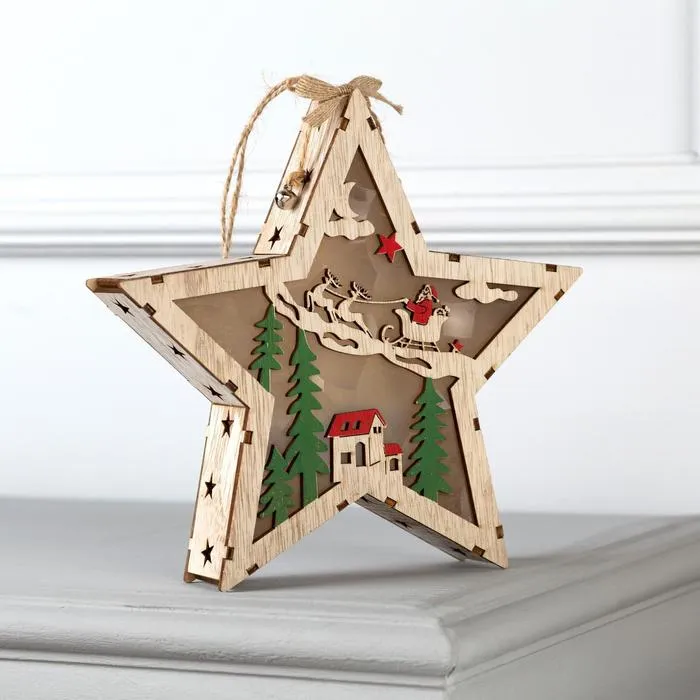 Светодиодная фигура «Звезда с новогодним пейзажем» 22 × 22 × 4 см, дерево, батарейки АААх2 (не в комплекте), свечение тёплое белое — Характеристики