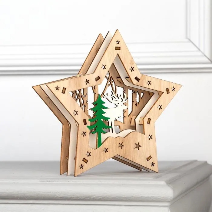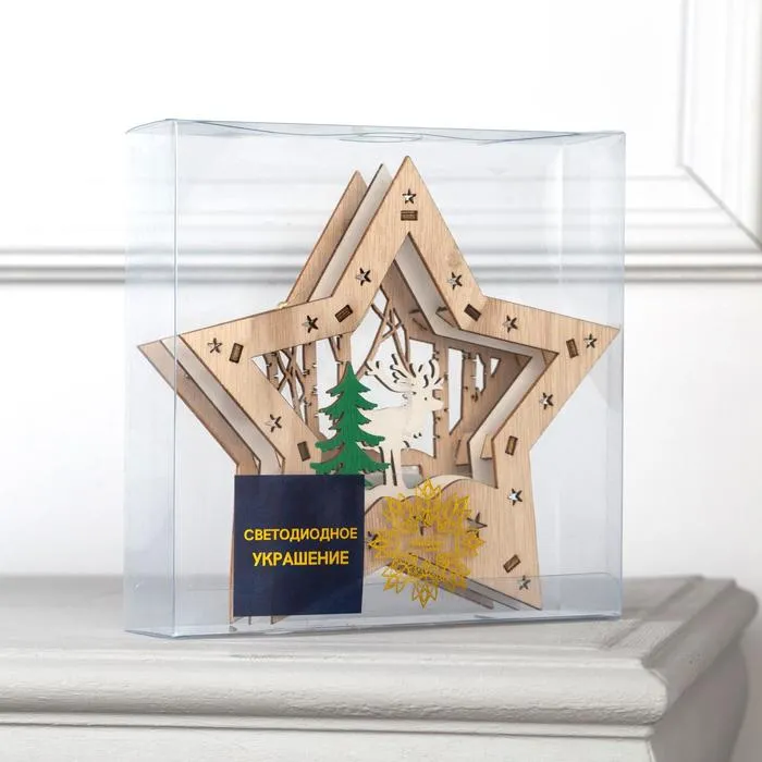 Светодиодная фигура «Звезда с оленем в лесу» 18 × 18 × 5 см, дерево, батарейки АААх2 (не в комплекте), свечение тёплое белое — Характеристики