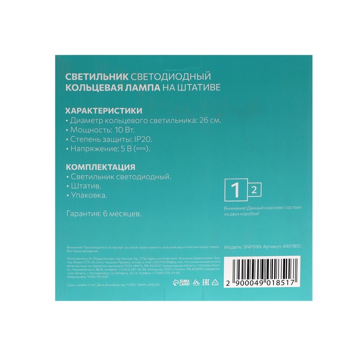 Светодиодная кольцевая лампа на штативе Luazon SNP099, 10" (26 см), 10 Вт, штатив 34-108 см — Характеристики