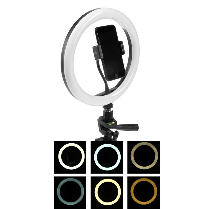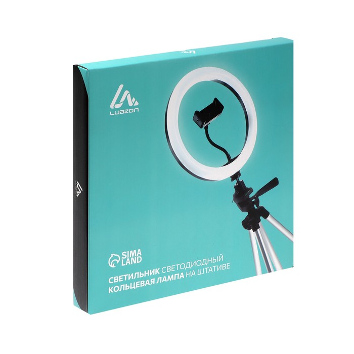 Светодиодная кольцевая лампа на штативе от Luazon поможет создать равномерное освещение для съёмок фото и видео. Штатив позволяет зафиксировать смартфон и регулировать его угол наклона. Для работы подключите устройство к адаптеру питания или к USB-розетке. Меняйте режимы и изменяйте яркость с помощью пульта на проводе.