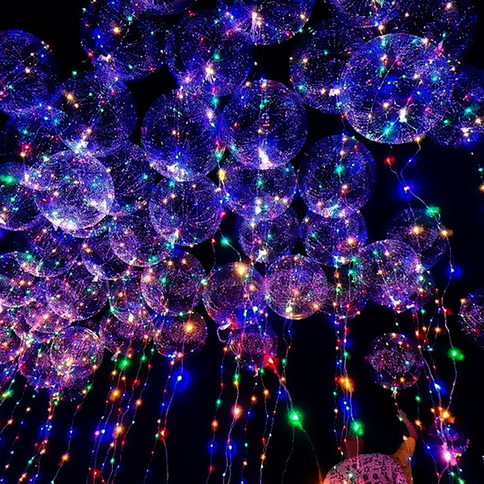Поместить внутрь шара. Надуйте воздушный шар воздухом и сдуйте. Проденьте светодиодную ленту через трубочку для шаров, остатки ленты поместите внутрь шара. Надуйте его гелием, перевяжите и закрепите в держателе и трубочке для шаров.