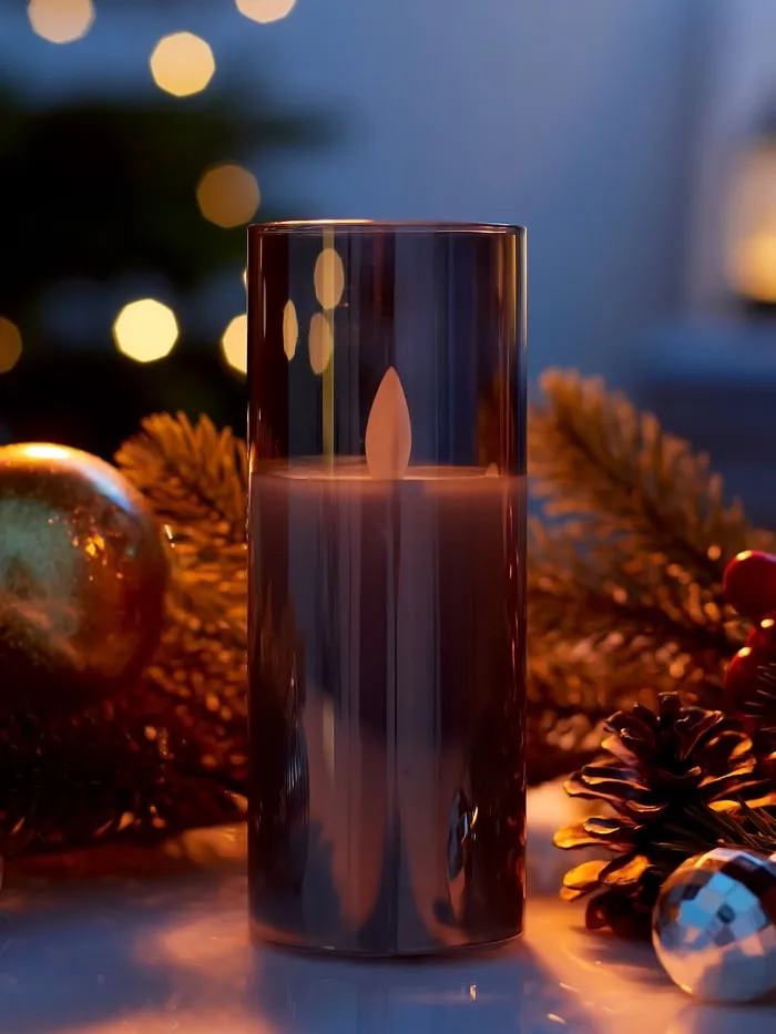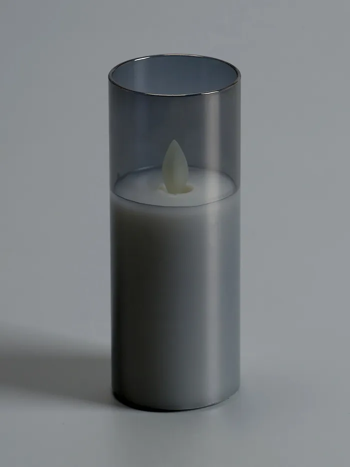 Серебристый оттенок этой светодиодной свечи в восковом стакане добавляет интерьеру современную элегантность и лёгкую нотку праздничного блеска. Компактные размеры — 14 × 5,5 см — позволяют гармонично разместить её на столе, полке или каминной полке, создавая атмосферу спокойствия и уюта.