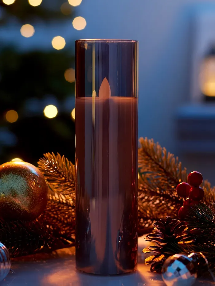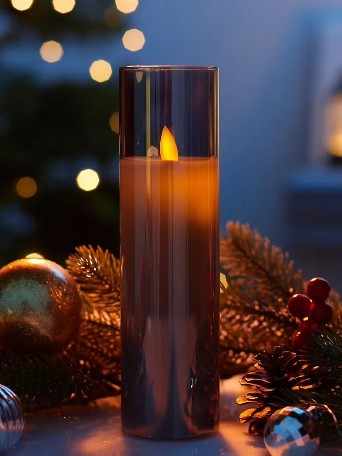 Серебристый оттенок этой светодиодной свечи в восковом стакане добавляет интерьеру современную элегантность и лёгкую нотку праздничного блеска. Компактные размеры — 18 × 5,5 см — позволяют гармонично разместить её на столе, полке или каминной полке, создавая атмосферу спокойствия и уюта.