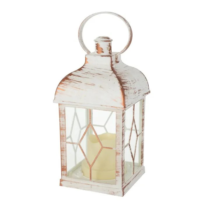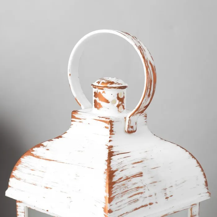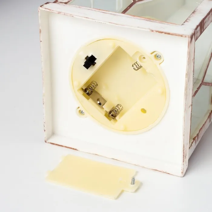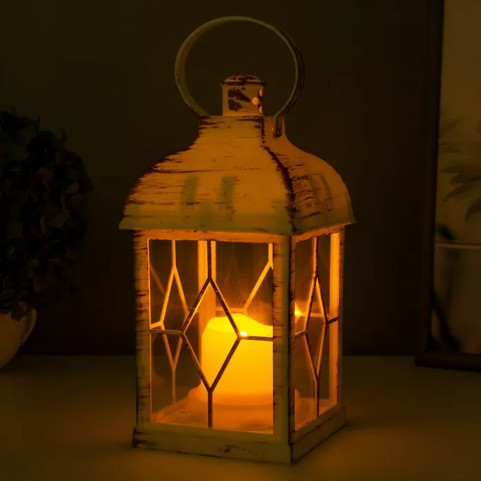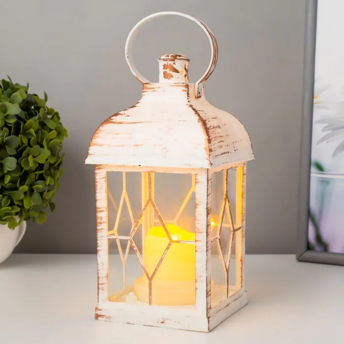 Светодиодная свеча в подсвечнике RISALUX «Фонарь и ромбы», LED-ночник, от батареек 3×ААА, белый с золотой патиной, 11×11×21.5 см — Характеристики