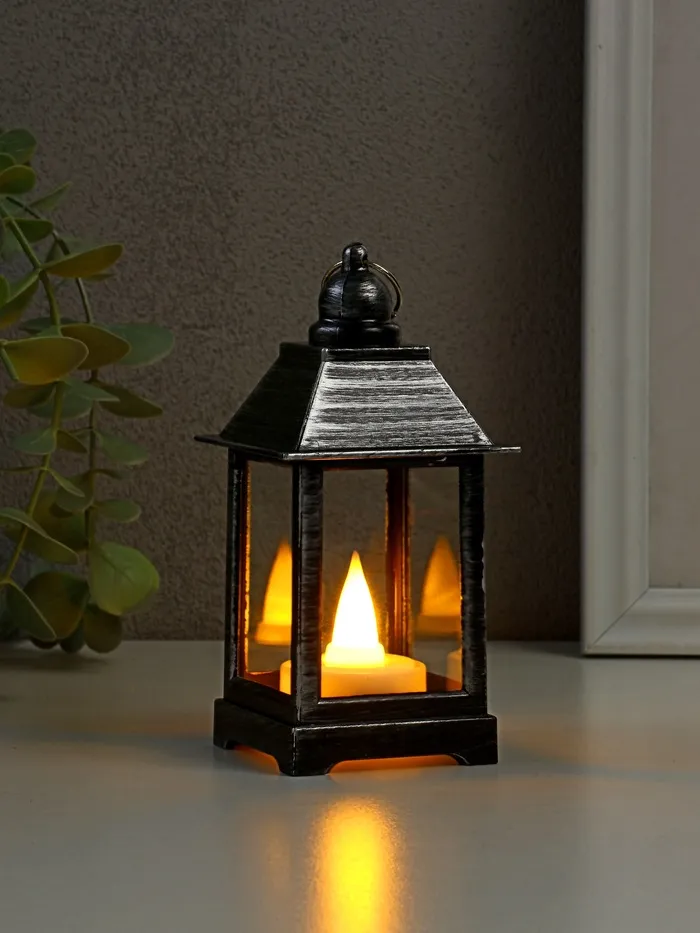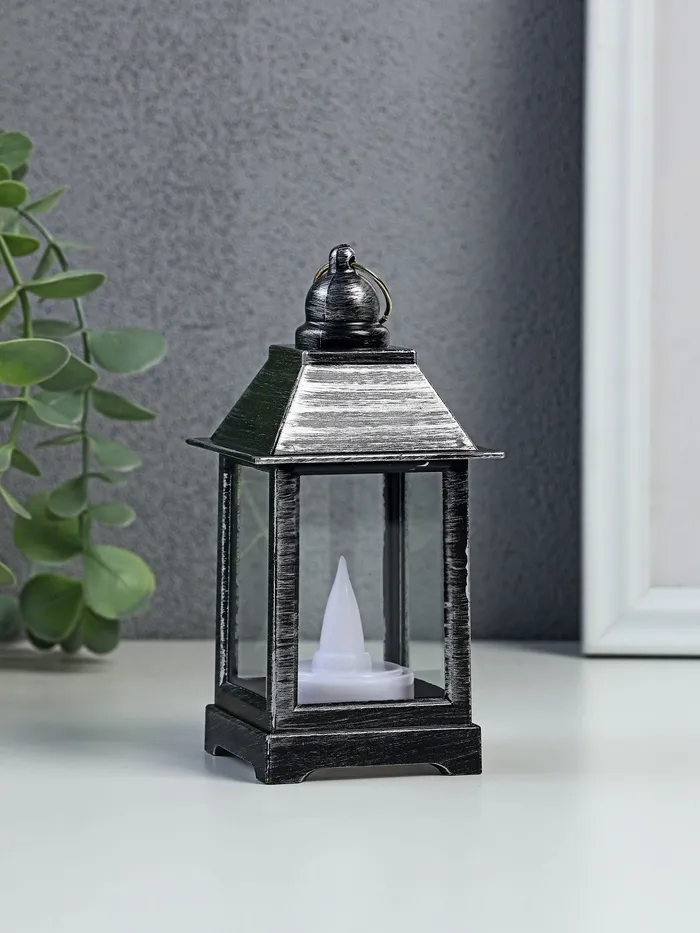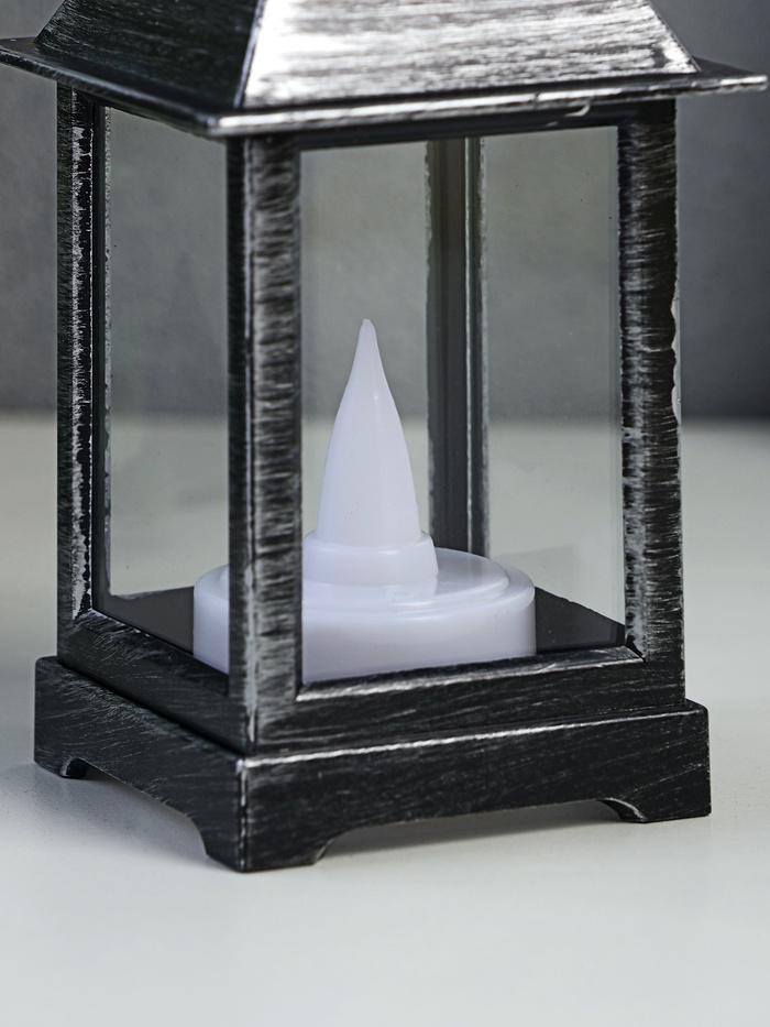 Светодиодная свеча в подсвечнике RISALUX «Фонарь малый», LED-ночник, от батареек 3×LR44, чёрно-серебристый, 6×6×13 см — Характеристики