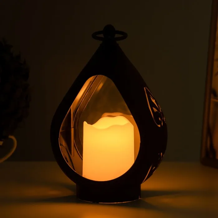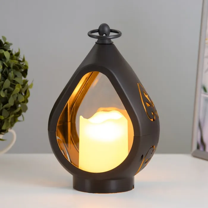 Светодиодная свеча в подсвечнике RISALUX «Фонарь средний», LED-ночник, от батареек 3×ААА, чёрный, 15×8.5×22 см — Характеристики