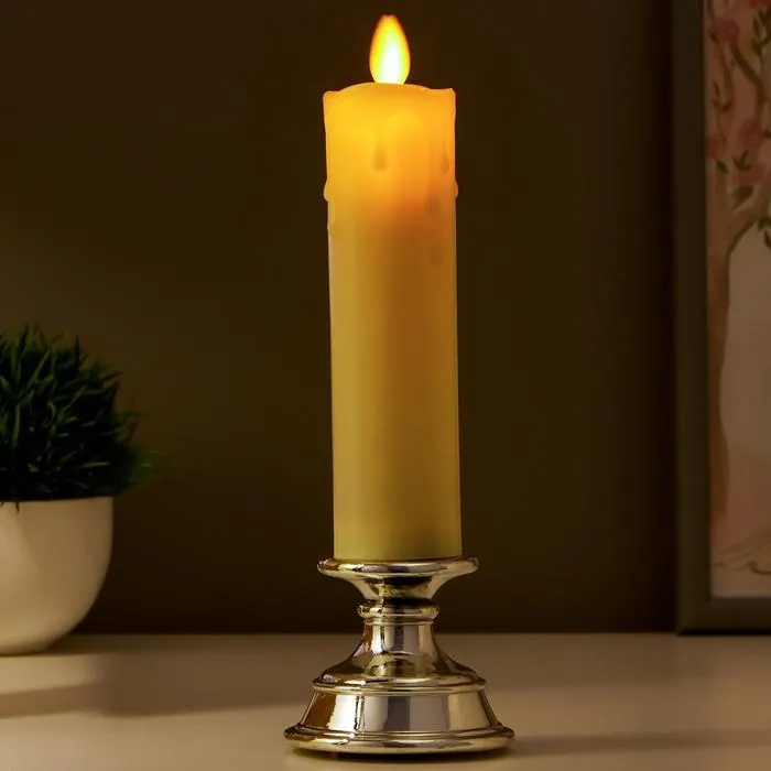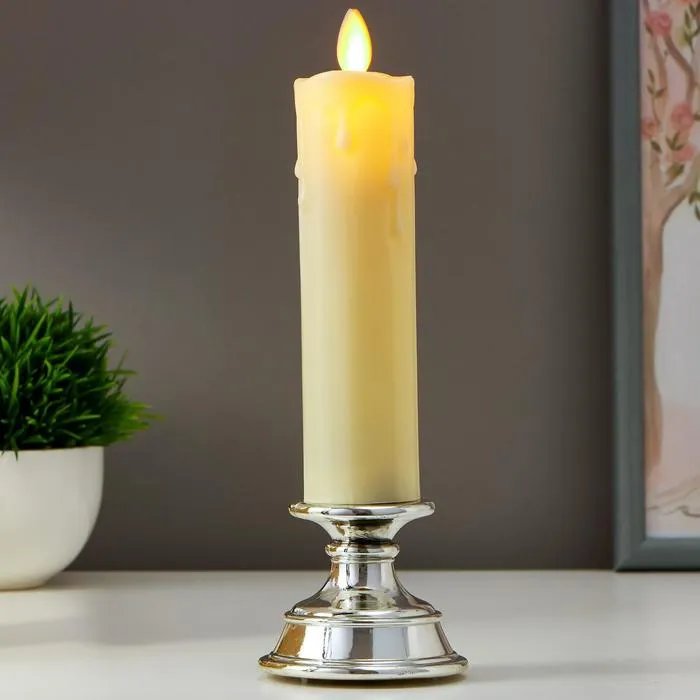 Светодиодная свеча в подсвечнике «С эффектом живого пламени», LED-ночник, от батареек 2×ААА, серебро, 7×7×21 см — Характеристики