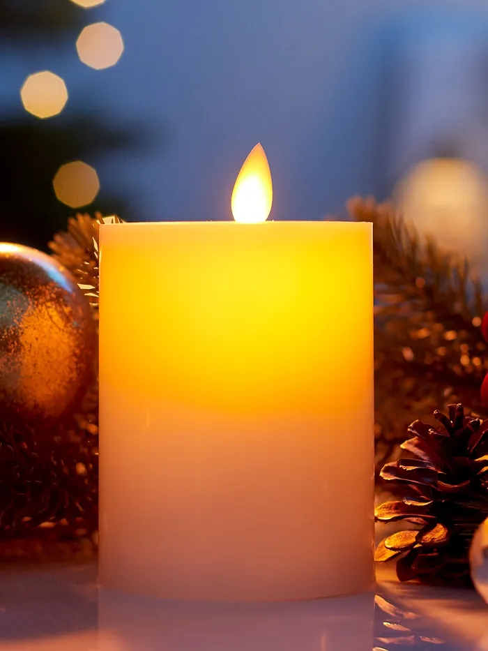 - Материал и качество: Натуральный воск придаёт свечи реалистичный вид и приятную фактуру, усиливая эффект настоящего свечения.