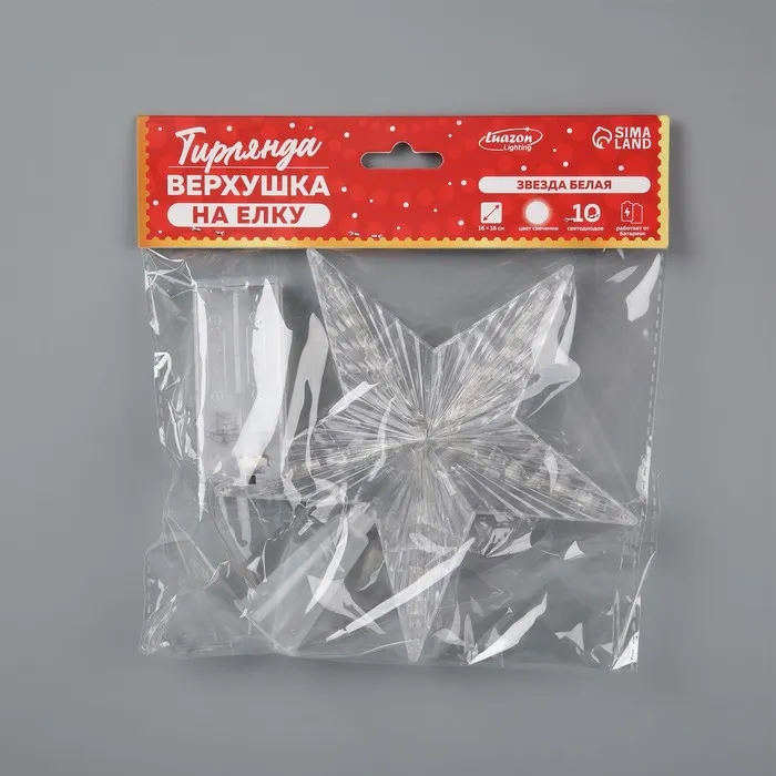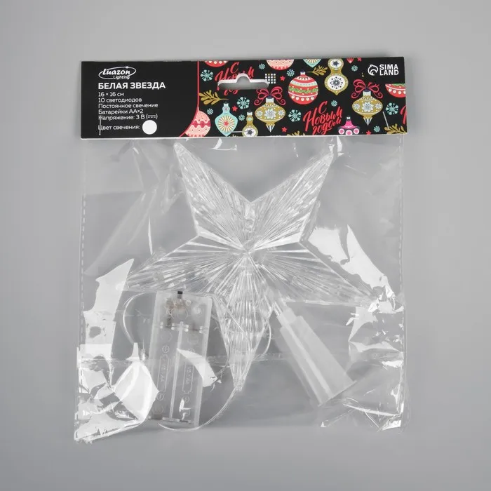 Светодиодная верхушка на ёлку «Звезда белая» 16 см, 10 LED, батарейки ААх2 (не в комплекте), свечение белое — Характеристики