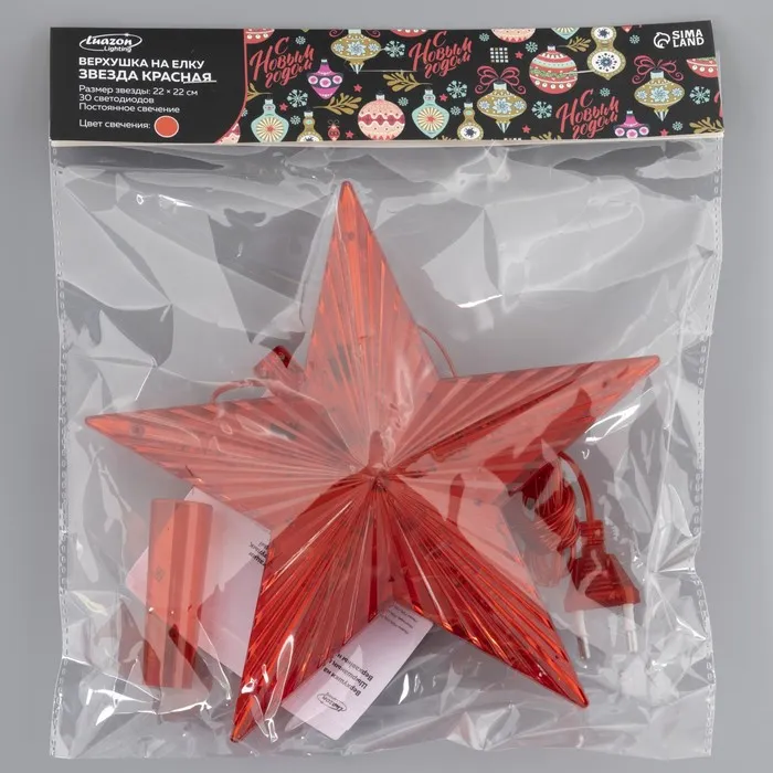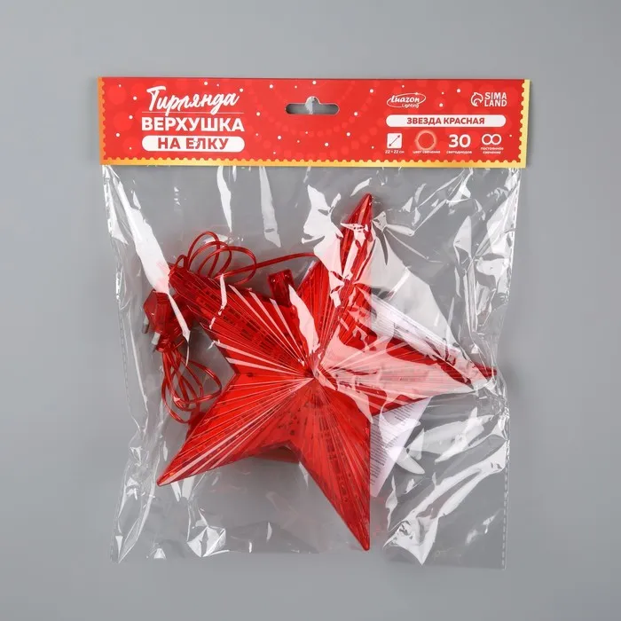 Светодиодная верхушка на ёлку «Звезда красная» 22 см, 30 LED, провод 2 метра, 220 В, свечение красное — Характеристики