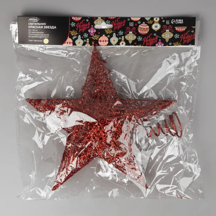 Светодиодная верхушка на ёлку «Звезда красная» 25 см, 20 LED, батарейки CR2032х2, свечение тёплое белое — Характеристики