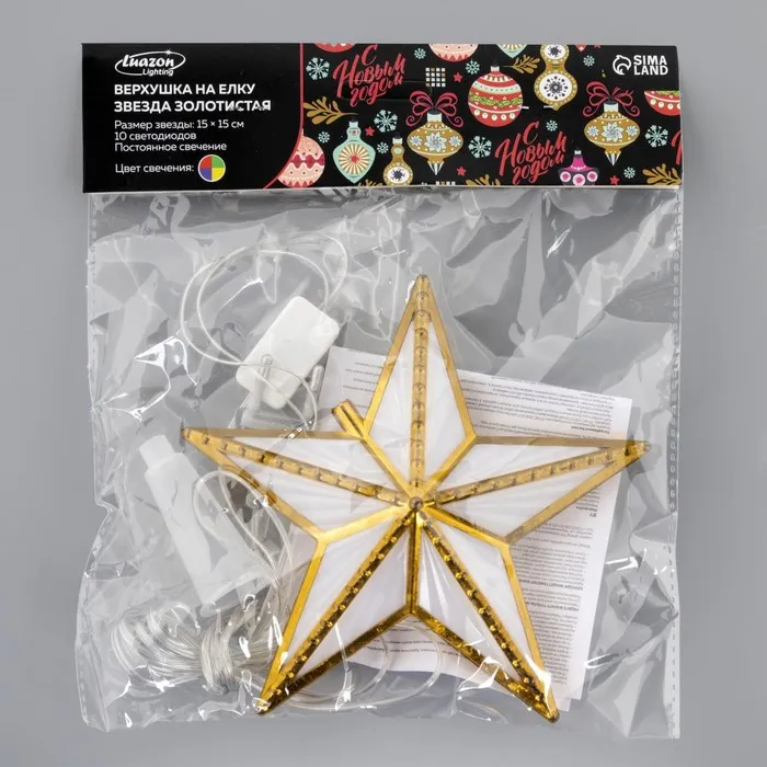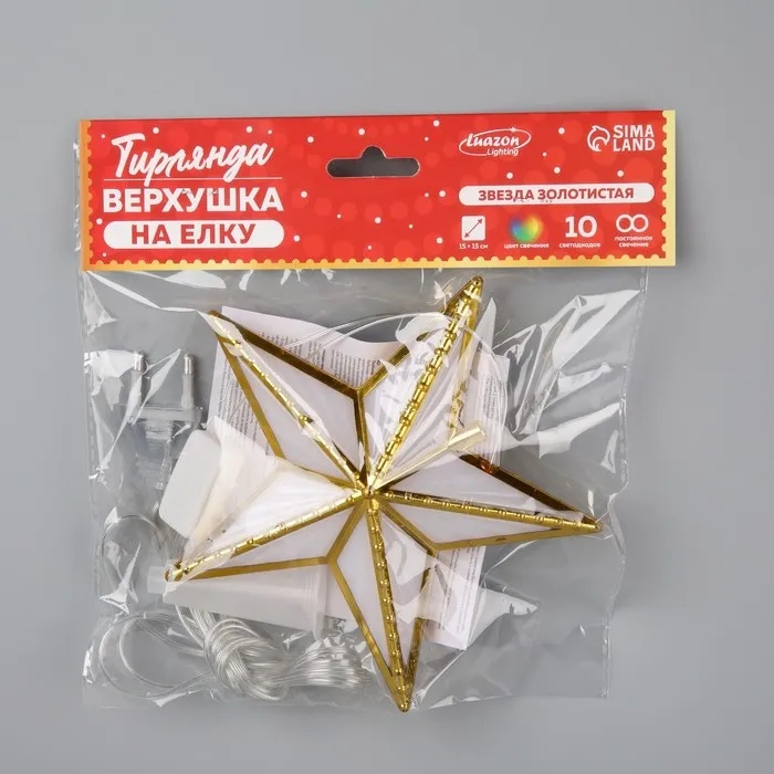 Светодиодная верхушка на ёлку «Звезда золотистая» 15 см, 10 LED, провод 2 метра, 220 В, свечение мульти — Характеристики