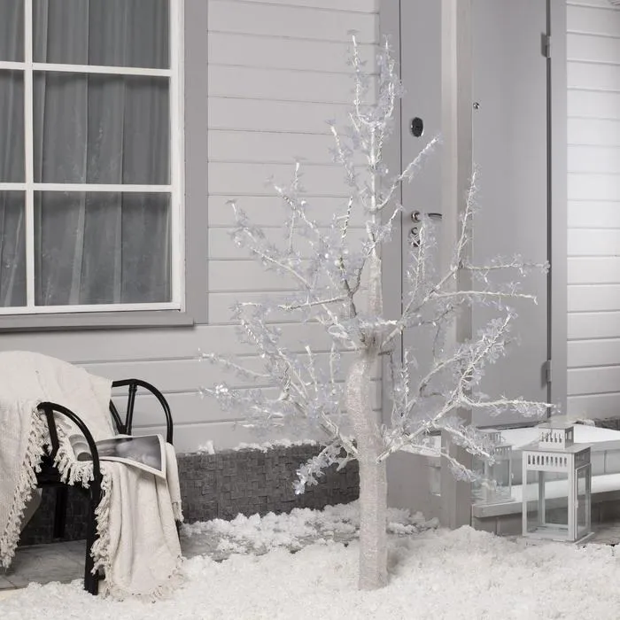 Диодное акриловое дерево подойдёт для декоративного освещения внутри и снаружи зданий, поможет визуально выделить постройку среди остальных. Фигуры из такого материала похожи на ледяные. В отличие от других моделей, у данной светятся не только насадки, но и сам ствол. Ветки снимаются для удобства транспортировки и хранения.