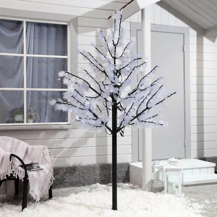 Уличные светодиодные деревья - популярная разновидность световых декораций, применяемых в оформлении интерьера и придомовых территорий. Оригинальное дерево, подсвеченное разноцветными огоньками, создает неповторимую сказочную атмосферу. Диодное дерево «Клён» подойдёт для декоративного освещения внутри и снаружи зданий. Световые деревья по внешнему виду очень схожи с настоящими, крупные размеры, реалистичный ствол с изгибом, цветы и листья в натуральную величину и все это украшено светодиодными лампочками. Несмотря на высокую яркость свечения светодиодные деревья потребляют совсем немного электроэнергии, это дает возможность эксплуатировать их круглогодично. Область применения LED-деревьев не ограничивается только новогодним периодом, они будут лаконично смотреться как элемент ландшафтного дизайна в саду или на пляже.
