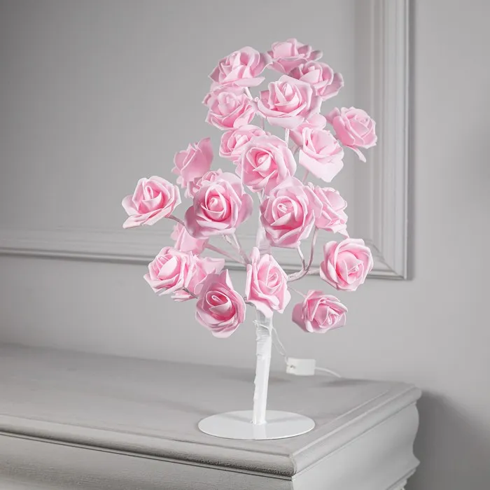 Светодиодный куст с розовыми розами - отличный вариант подарка человеку с безупречным вкусом. Устройство работает от сети.