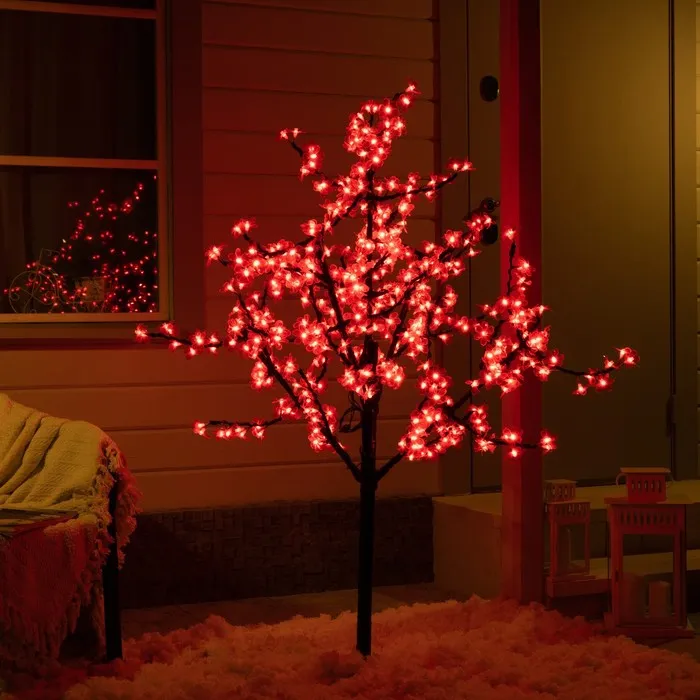 Светодиодные кусты применяются для декоративной подсветки. На множестве ярких цветочков, почек или листочков горят огоньки.