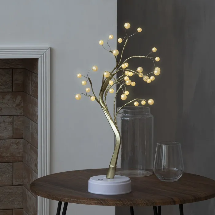 Светодиодный куст «Жемчужины золотистые» 45 см, 36 LED, постоянное свечение, батарейки ААх3 (не в комплекте), USB, свечение тёплое белое — Характеристики