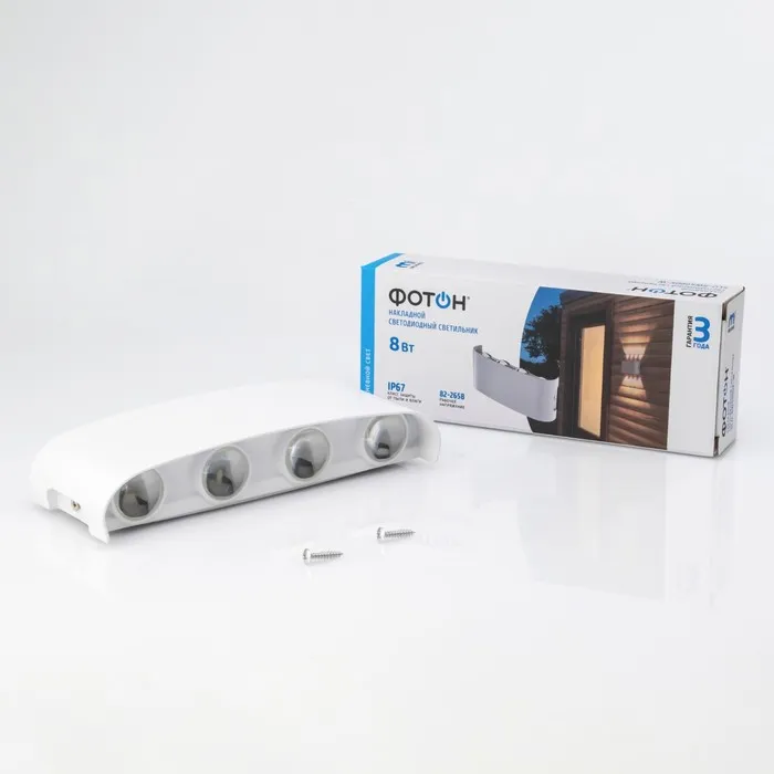 Светодиодный накладной светильник ФОТОН SLO- 8W4000K-W относится к продуктовой категории "архитектурная подсветка" и предназначен для декоративного освещения домов, дач и других строений, в том числе в условиях нестабильного напряжения электросети. Обеспечивает стабильно ровный световой поток в диапазоне напряжений от 82 В до 265 В. Может использоваться в самых неблагоприятных погодных условиях, в том числе при снеге и дожде любой интенсивности. Технология термореактивной порошковой покраски обеспечивает устойчивость к истиранию, механическому и электрическому воздействию, УФ-излучению и перепадам температуры.