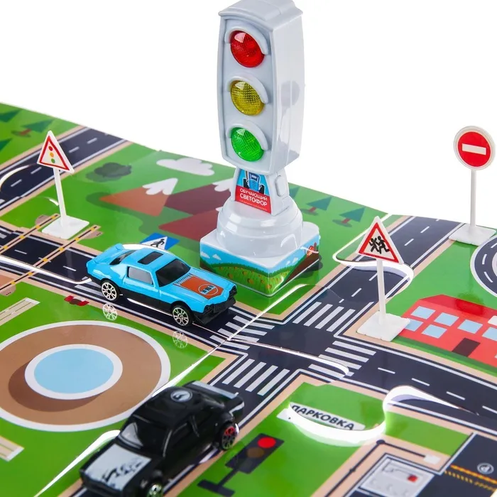 Маленький городской планировщик мечтает о своей улице? Светофор с игровым полем «Изучаем ПДД» – это яркий и увлекательный набор, который познакомит ребёнка с правилами дорожного движения.