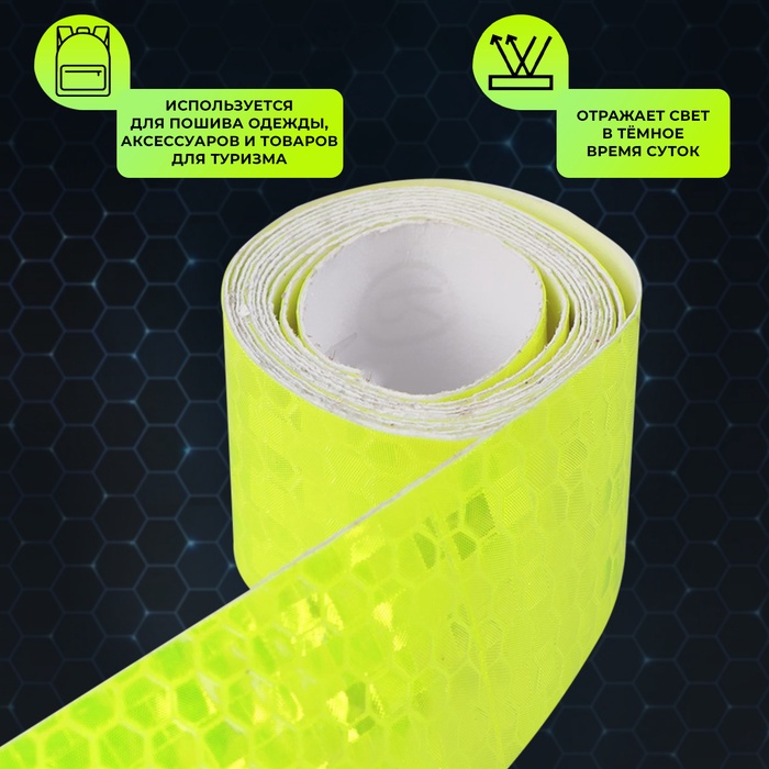 Светоотражающая лента-наклейка, 2.5 см, 1±0.1 м, жёлтая — Характеристики