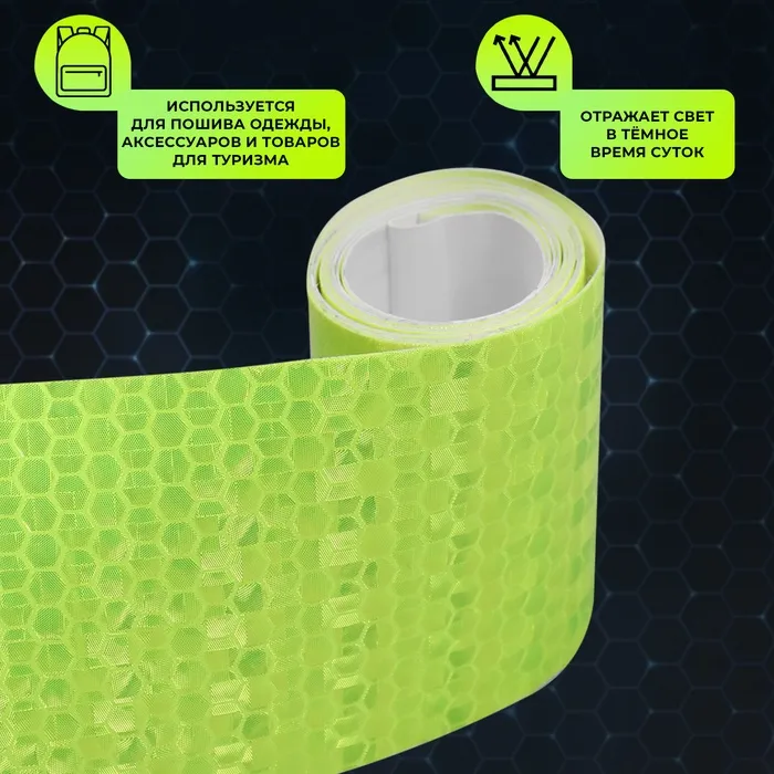 Светоотражающая лента-наклейка, 5 см, 1±0.1 м, жёлтая — Характеристики