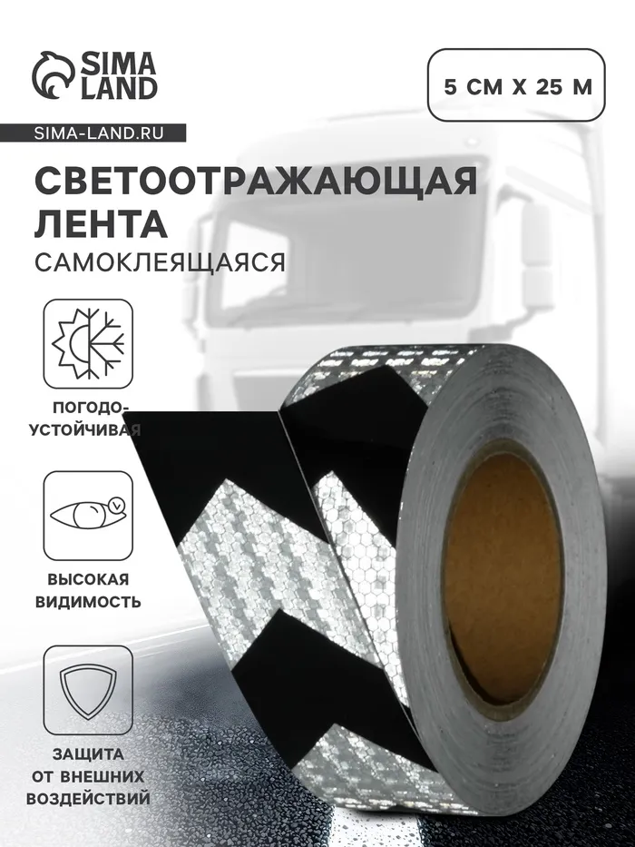 Светоотражающая лента, самоклеящаяся, бело-черная, 5 см × 25 м — Характеристики