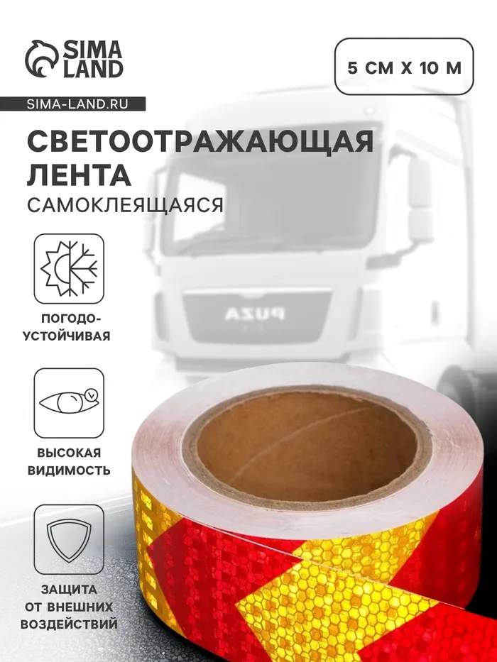 Светоотражающая лента, самоклеящаяся, красно-желтая, 5 см × 10 м — Характеристики