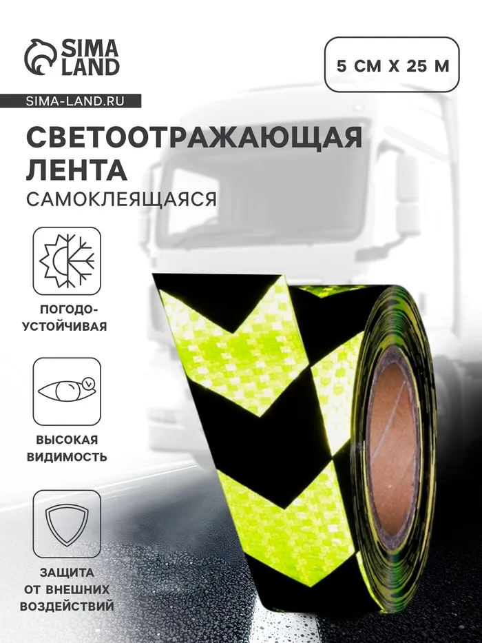 Светоотражающая лента, самоклеящаяся, зелено-черная, 5 см × 25 м — Характеристики
