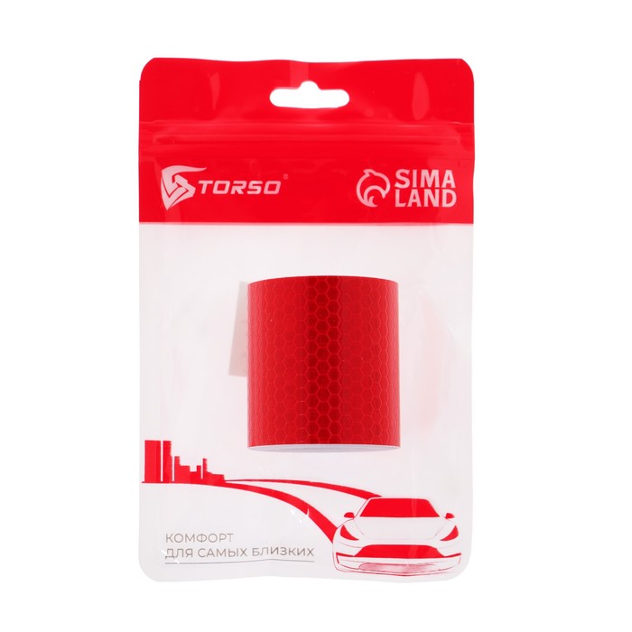 Светоотражающая лента TORSO, самоклеящаяся, красная, 5 см х 3 м