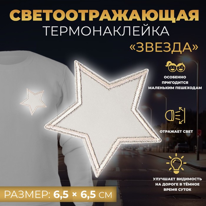 Светоотражающая термонаклейка «Звезда», 6,5 × 6,5 см, цвет серый, цена за 1 штуку — Характеристики
