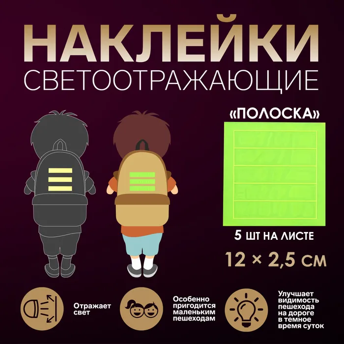 Светоотражающие наклейки «Полоска», 12×2.5 см, 5 шт. на листе, МИКС — Характеристики
