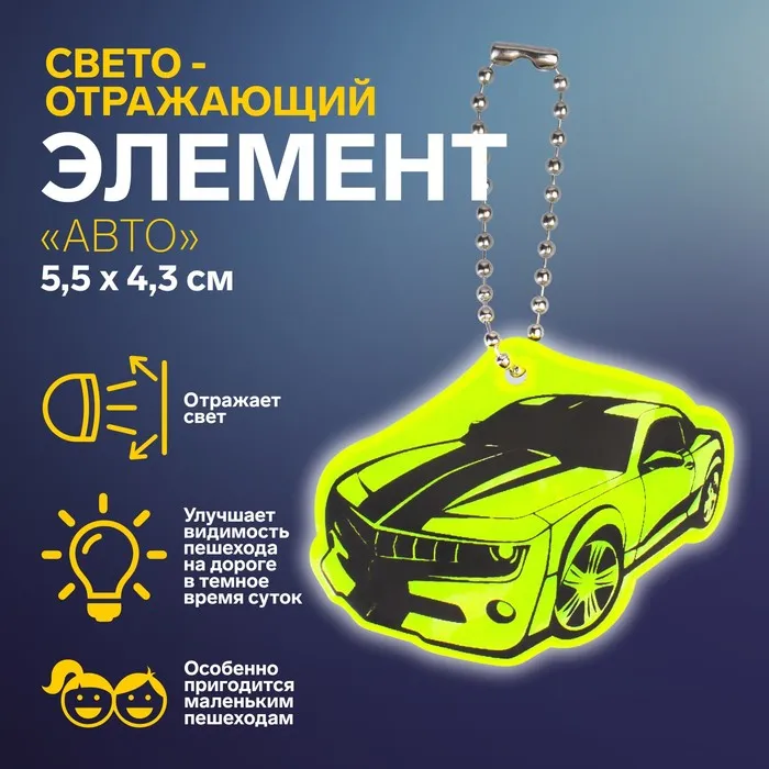 Светоотражающий элемент «Авто», двусторонний, 5.5×4.3 см, МИКС — Характеристики