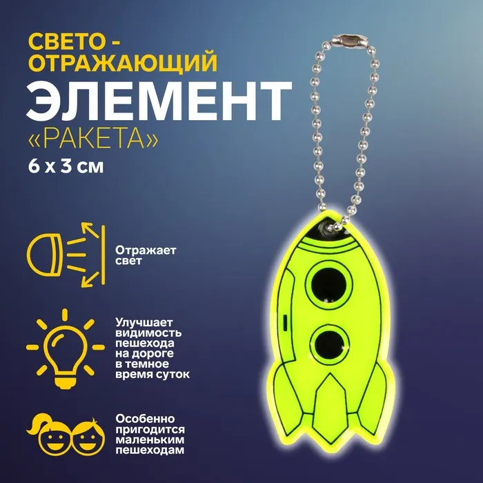 Светоотражающий элемент «Ракета», двусторонний, 6×3 см, МИКС — Характеристики