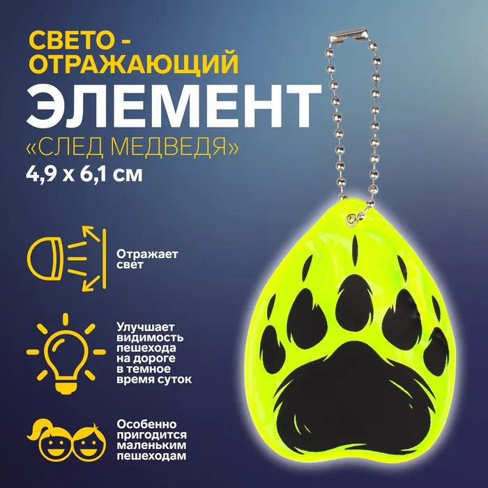Светоотражающий элемент «След медведя», двусторонний, 4.9×6.1 см, МИКС — Характеристики
