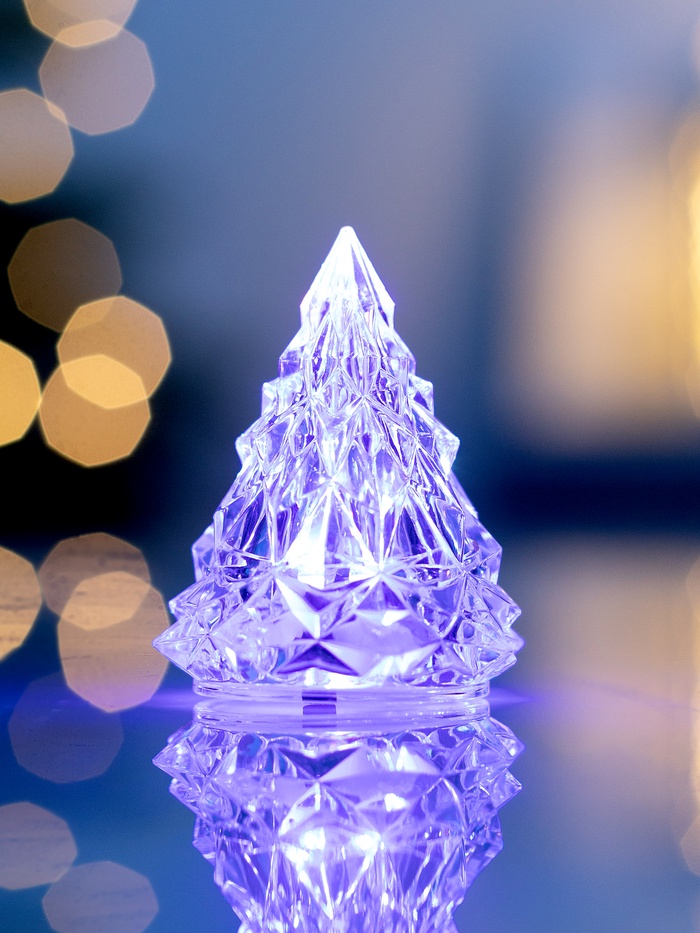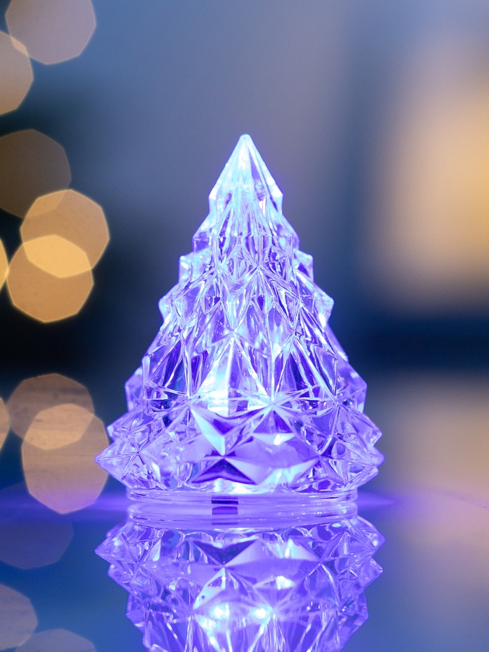 Миниатюрная световая ёлочка высотой 6,5 см способна стать ярким акцентом праздничного интерьера. Изготовленная из прозрачного пластика, она наполнена живой игрой RGB-светодиода, который плавно переливается, создавая волшебную атмосферу новогоднего вечера.