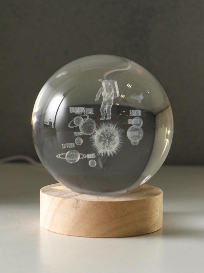 Световая фигурка стекло «Шар. Голограмма: Космонавт и планеты», d=8 см, подставка дерево, USB, 8×8×9.5 см — Характеристики