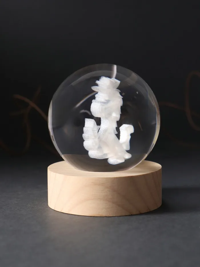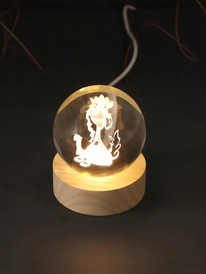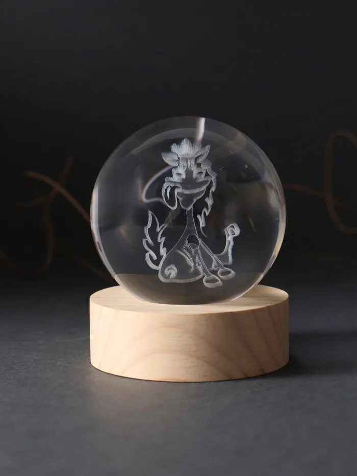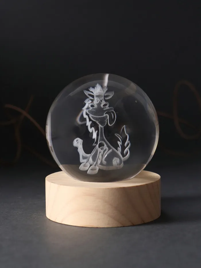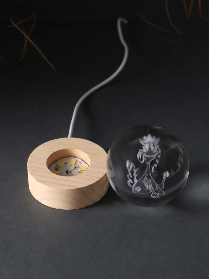 Представляем очаровательный световой шар, который словно оживает в темноте, наполняя пространство тёплым сиянием и атмосферой волшебства. Внутри прозрачного стеклянного шара диаметром 6 см заключена изящная голограмма — лошадка в короне, которая будто переносит нас в мир детских грез и фантазий. Высотой всего 8 см, включая деревянную подставку, этот светильник станет идеальным акцентом для вашего рабочего стола, полки или журнального столика.