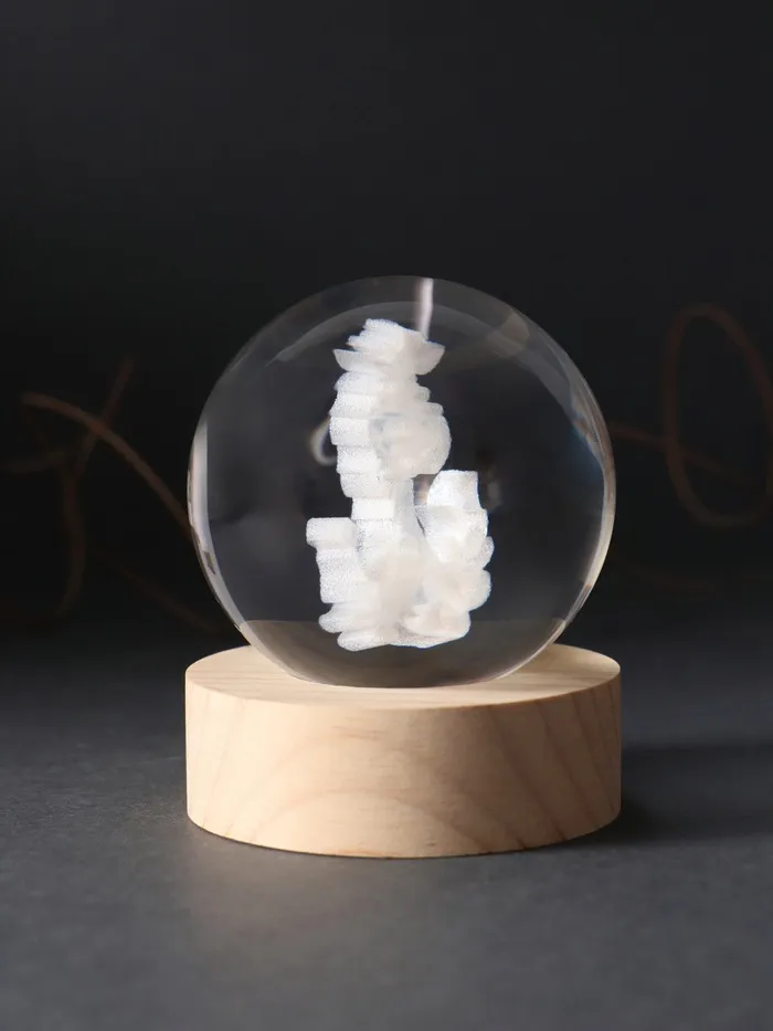 Изделие выполнено из высококачественных материалов: прозрачное стекло шара сочетается с натуральной текстурой деревянной подставки, создавая гармонию утончённости и природной красоты. Встроенные LED-элементы обеспечивают постоянное тёплое свечение, которое создаёт уютную атмосферу без лишнего блеска. Благодаря питанию от USB, светильник легко использовать в любом месте, где есть доступ к порту: дома, в офисе или даже в путешествии.