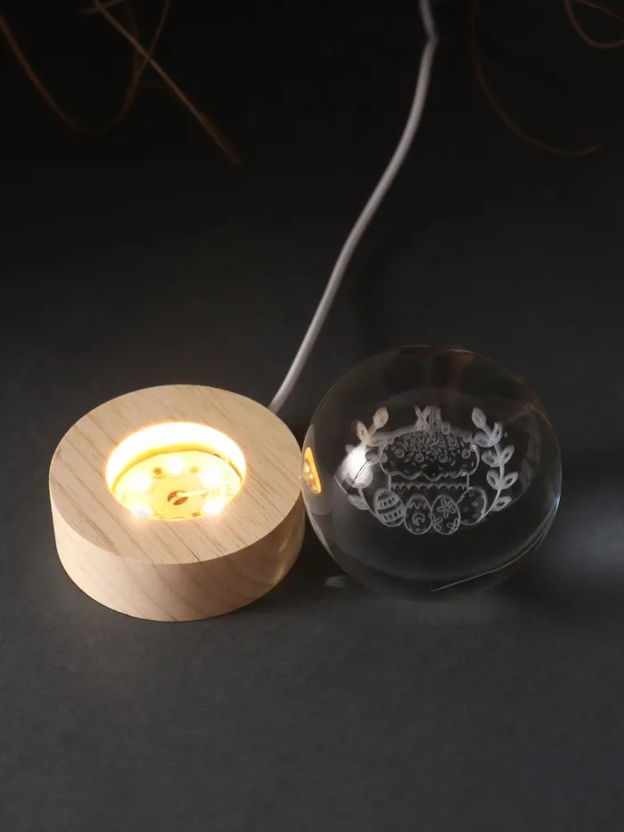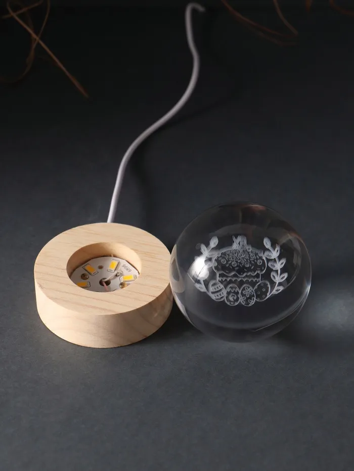 Представляем световой шар, который словно оживает в темноте, наполняя пространство тёплым сиянием и атмосферой праздника. Внутри прозрачного стеклянного шара диаметром 6 см заключена изящная голограмма — пасхальная корзинка, которая будто переносит нас в мир семейных традиций и радостных моментов. Высотой всего 8 см, включая деревянную подставку, этот светильник станет идеальным акцентом для вашего интерьера, особенно в преддверии Пасхи или других уютных праздников.
