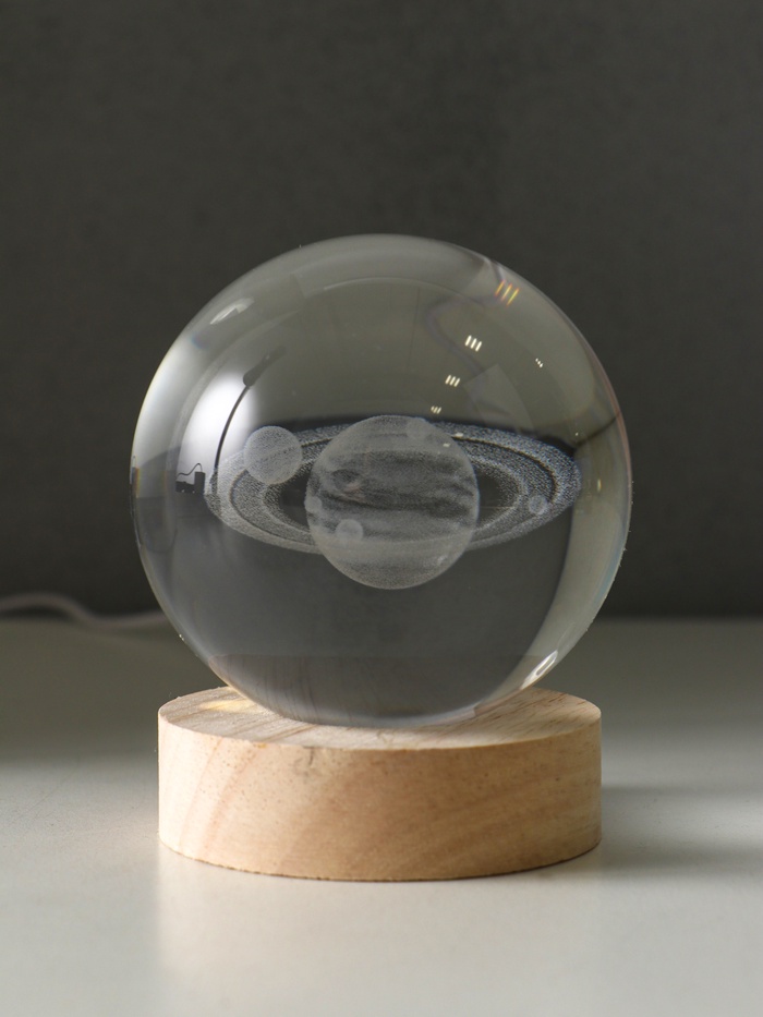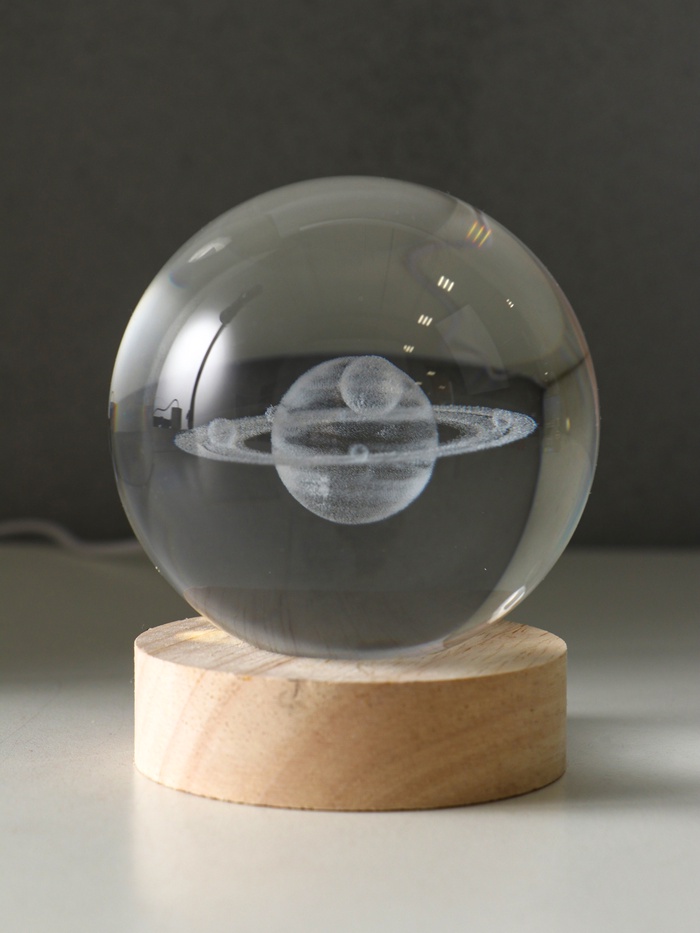Световая фигурка стекло «Шар. Голограмма: Солнечная система», d=8 см, подставка дерево, USB, 8×8×9.5 см — Характеристики