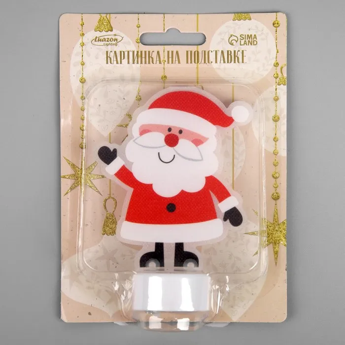 Световая картинка на подставке «Дед Мороз» 11 см, батарейки, свечение тёплое белое — Характеристики