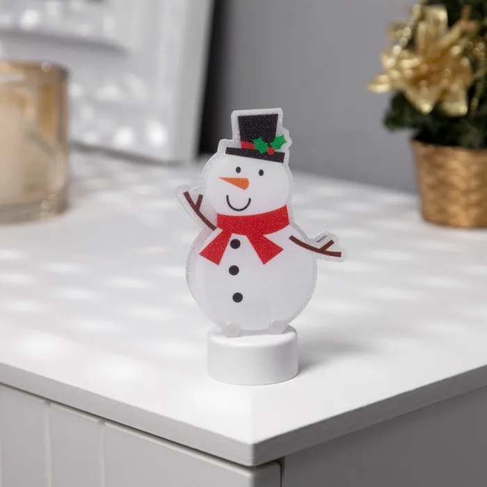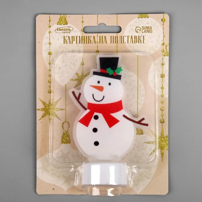 Световая картинка на подставке «Снеговик» 11 см, батарейки, свечение тёплое белое — Характеристики