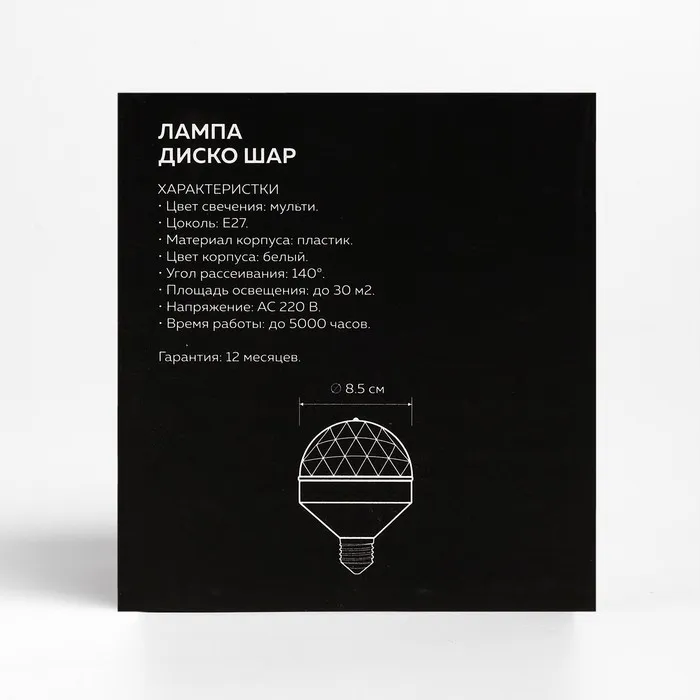 Световой прибор «Диско-шар» 8.5 см, Е27, свечение RGB — Характеристики