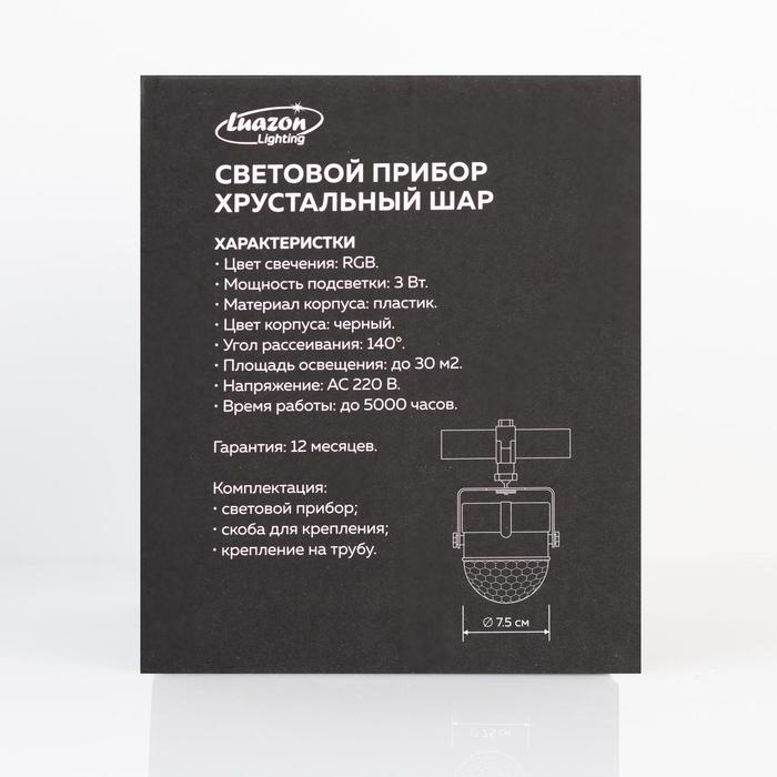 Световой прибор «Хрустальный шар» 7.5 см, пульт ДУ, крепление на трубу, свечение RGB, 5 В — Характеристики