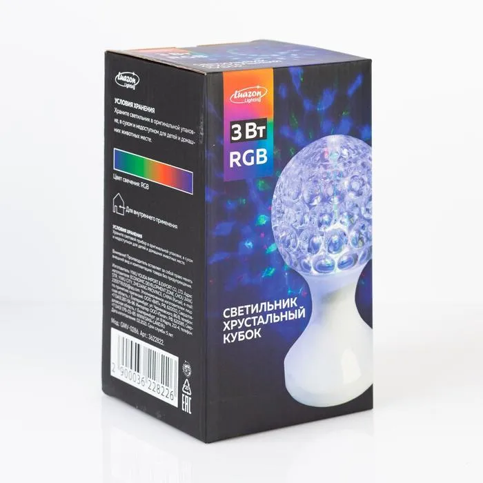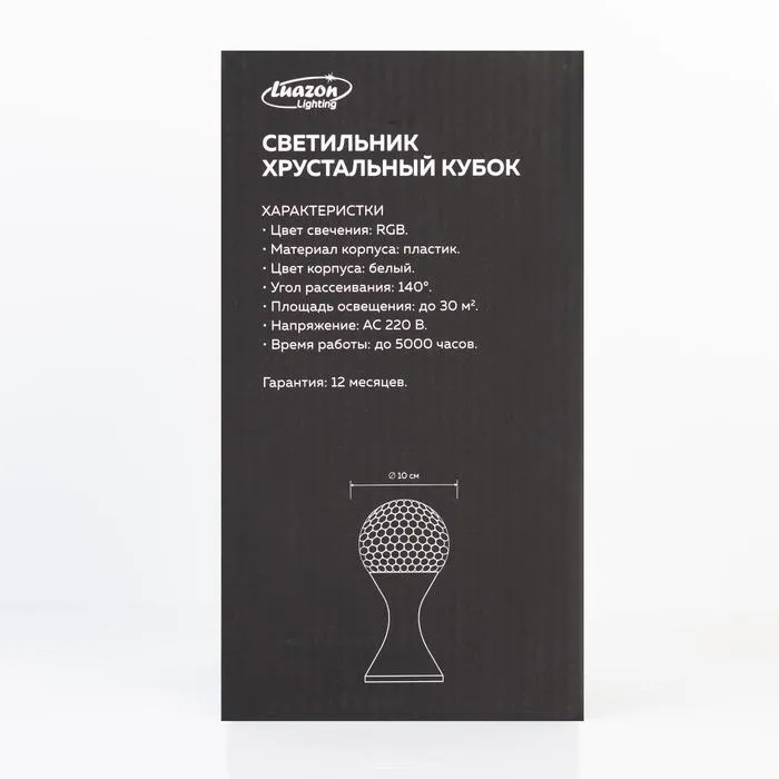 Световой прибор «Кубок» 10 см, свечение RGB, 220 В, белый — Характеристики