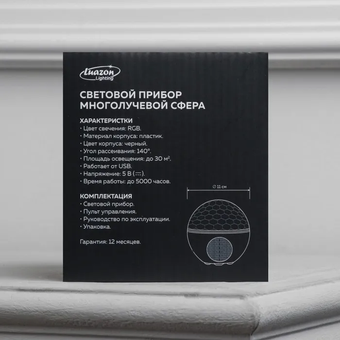Световой прибор «Сфера» 12 см, динамик, пульт ДУ, 5 В, свечение RGB — Характеристики